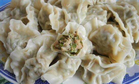 6.鍋中加水燒開,水開後慢慢下入餃子,蓋上鍋蓋,大火煮沸,澆入些許涼水。反復三次,見餃子皮鼓起來,即可盛出來。