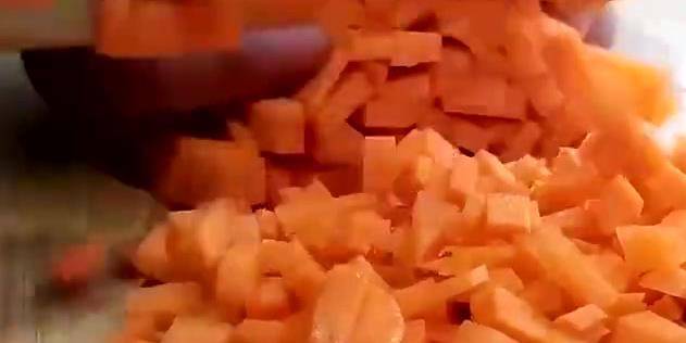 面團揉好以後放到面板上,像洗衣服一樣揉搓,收成一個光滑的面團。黃彩椒洗凈切開,剔除裡面的種子切成小塊,綠菜椒也切成小塊,胡蘿卜切成小丁,香腸切成小丁,鍋中水燒開,倒入切好的胡蘿卜丁、青、黃椒、玉米粒,焯一下水。