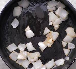 鍋燒熱,放入油和洋蔥塊,煸炒至洋蔥金黃,炒出香味。
