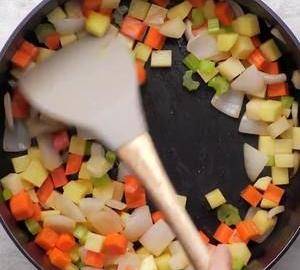 放入胡蘿卜、土豆、番茄、芹菜略微翻炒。