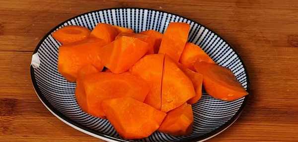 胡蘿卜清洗幹凈,外皮削幹凈,再把胡蘿卜頭部切掉,切成滾刀狀,青蔥切成蔥花,切好後放碗中備用。