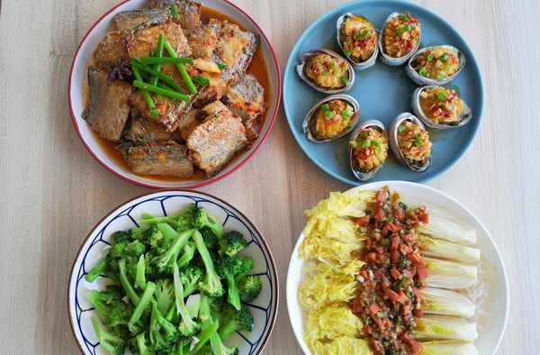 四樣菜不到一個小時就搞定瞭。兩樣蒸菜放到臻米料理機中一起蒸,蒸菜的同時做紅燒帶魚,最後再炒個西蘭花,簡簡單單,清清爽爽的四樣菜就完成瞭,好吃又不會長肉,多吃幾口也無妨。
