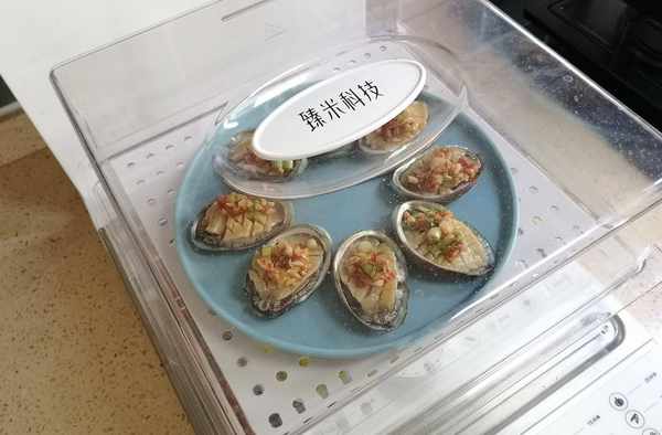 8、上面一層放入鮑魚,料理機中註入適量的純凈水,定時器調至10分鐘。