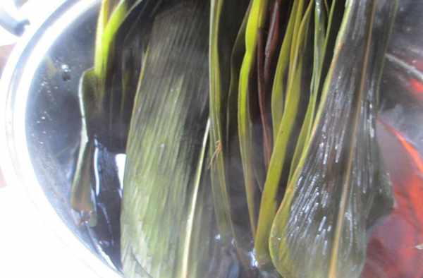 3.幹粽葉呢,至少還是要用水給泡個一天,如果還不是很軟的話呢,是可以放到鍋裡面煮一下。