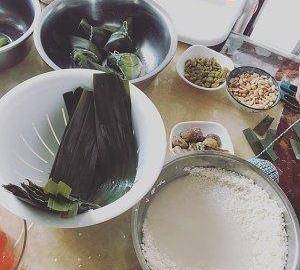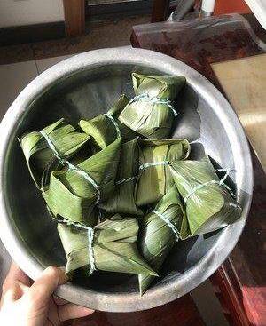 粽葉開水煮沸後刷幹凈備用,粽葉要買越寬的越好哦