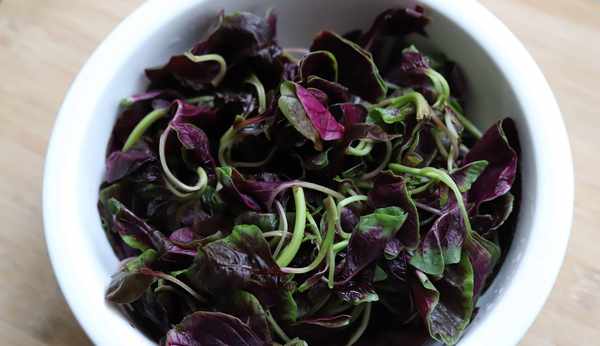 準備食材:莧菜、大蒜、生抽、食用油、白糖、精鹽。