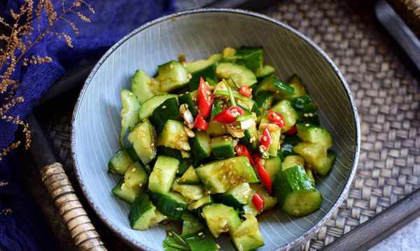 準備食材:黃瓜、白糖、精鹽,陳醋、大蒜、食用油。