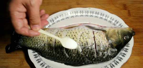 1.首先準備新鮮的鯉魚一條,去掉魚鱗和內臟。然後在表面貼上一字花刀。放在清水中,給它沖洗幹凈。控幹水分放入碗中備用。