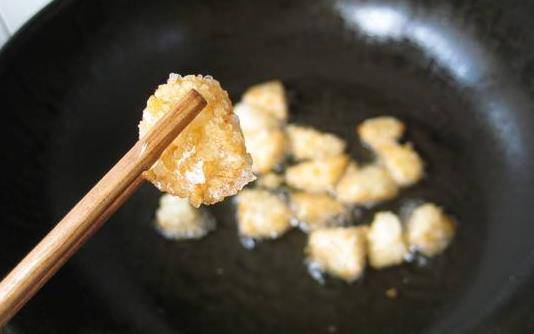 最後鍋中加入適量食用油,燒熱後,將粽子一個個的放進去炸制,炸到粽子表面變成金黃色就可以瞭。