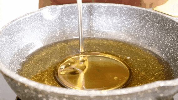 3.油溫7成熱,預熱模具5分鐘,倒入花生糊。