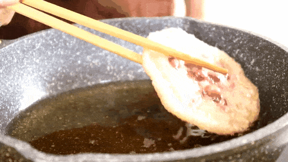 4.轉小火,炸至自動脫模。