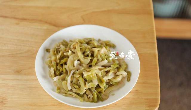 3、榨菜的選擇,榨菜建議直接購買清淡型的袋裝產品。主要是考慮到市面醃制的“大頭菜”實在太咸瞭,如果用來烹煮那湯著實沒辦法喝。把榨菜倒入水中清洗一邊,然後撈出備用。