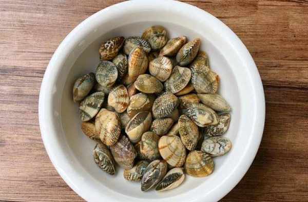 第一步:首先把花蛤清洗幹凈放入碗裡,加入一勺鹽,適量清水,浸泡1個小時,浸泡好清洗幹凈待用。