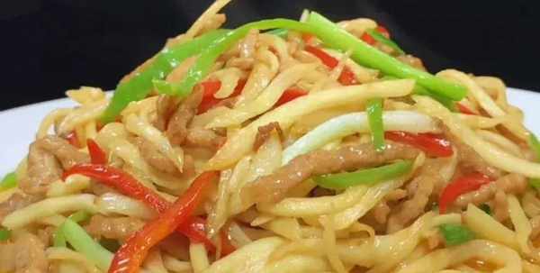 1、首先把茭白外面一層老皮消掉,切成粗細均勻的絲,豬瘦肉切成肉絲,切好放入盤子裡面,放入少許的食鹽,幾滴老抽,一點清水,少許的玉米淀粉抓拌均勻,抓勻後再放入一勺食用油,鎖住水分,一個大青紅椒切成絲,大蒜子切成片,兩根小蔥切成蔥段。