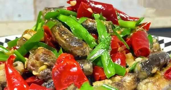 3、油溫五成熱,下入黃鱔炸成微微發黃撈起,把蒜末放鍋裡炒香,再把黃鱔放入炒出香味,放點料酒去腥,一勺生抽炒至入味,再淋入一碗開水,放入幹辣椒炒出辣味。炒制湯變得粘稠,放一勺食用鹽,胡椒粉,最後把韭菜放入,翻炒幾下,就出鍋裝盤啦。