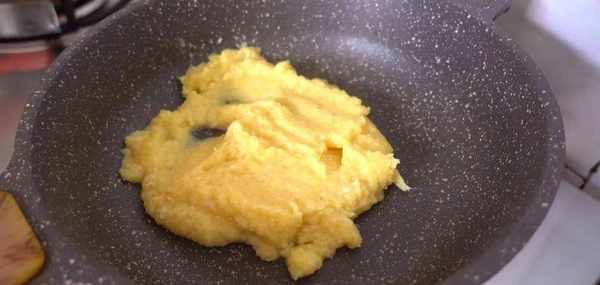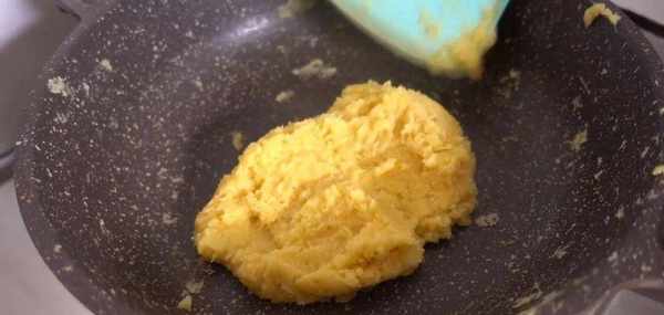 再加10克玉米油,小火翻炒,炒幹水份,就能得到綿密的綠豆蓉瞭。