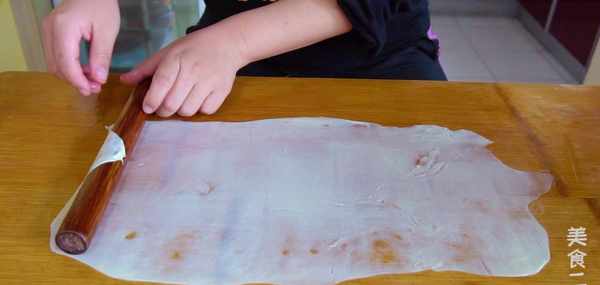 3)盡可能搟得薄一點,如果出現瞭幾個小破洞不要擔心,後期會刷蛋液修補;