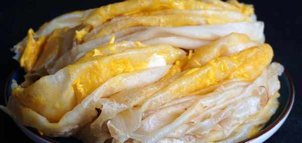 烙好的雞蛋餅又薄又長,就像綢帶一樣軟軟的,保存好放上3天都不會發硬的。另外給大傢一個保存餅的方式: