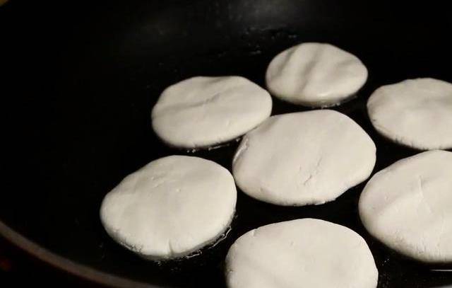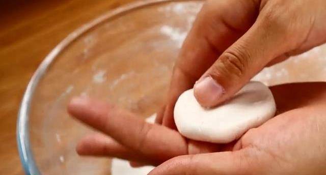 放在手掌中搓圓,然後再壓扁,做出餅狀,