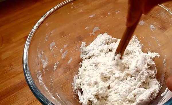 用70度左右的開水燙面,少量多次倒入,邊倒邊攪拌,