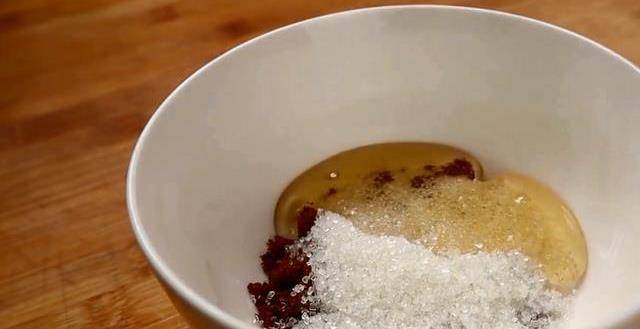 第二步:餳面的時間,碗中加入幾勺紅糖,幾勺白糖,有蜂蜜的話也加幾勺,