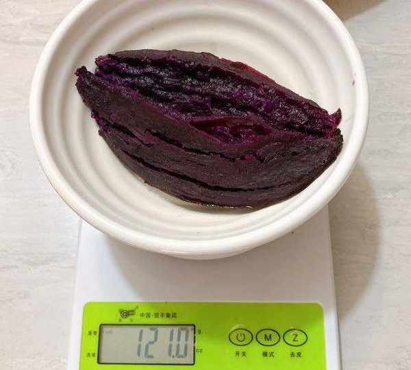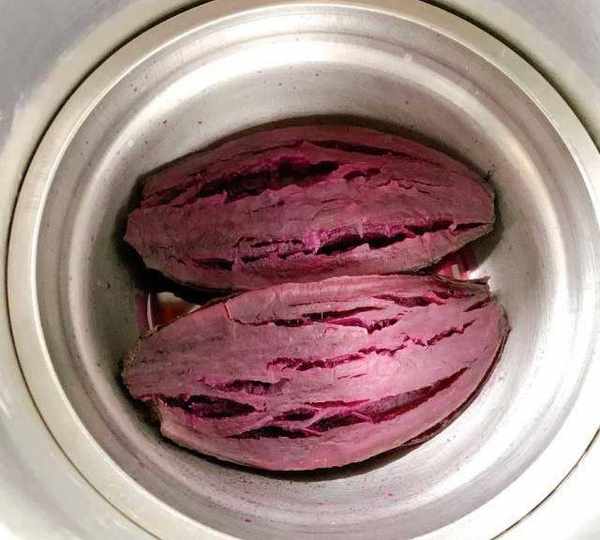 第2步、將紫薯提前蒸熟至軟爛備用。