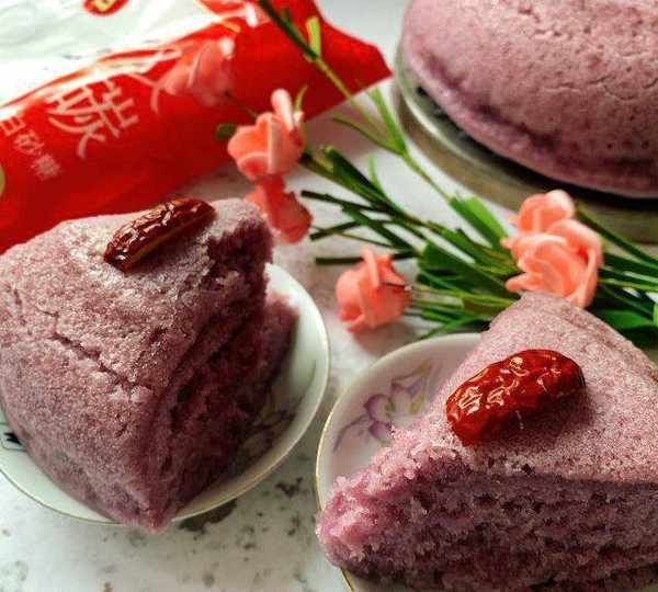 原料:紫薯、面粉、木薯粉、酵母、紅棗、糖、水。