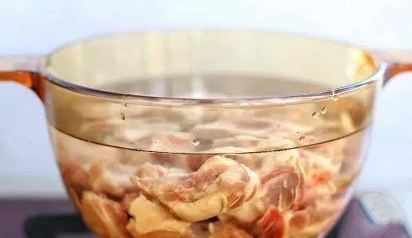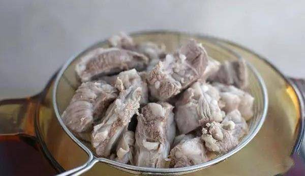 將排骨冷水下鍋煮開撇去表面浮沫 。
