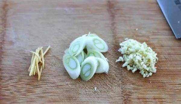 .切蔥花、薑絲和蒜末備用。