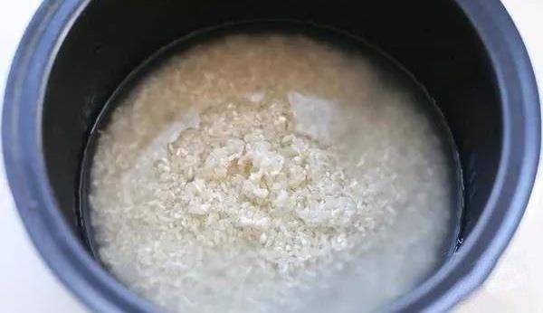 大米淘洗兩遍加入比平時煮飯稍微少一些的清水,浸泡半個小時左右。