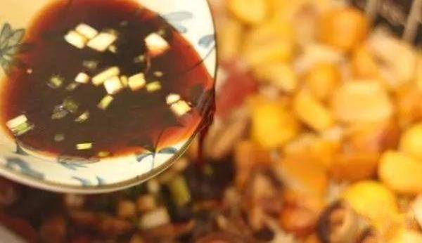 燒飯同時調好醬汁。小碗中加二湯匙生抽、一茶匙老抽、一茶匙糖、一茶匙魚露、一茶匙芝麻香油、一茶匙鹽,用五湯匙溫水調勻,撒些許蔥花。