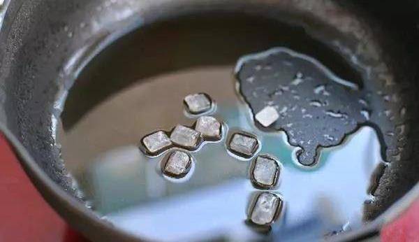 鍋中倒適量食用油燒至五成熱,放入冰糖小火翻炒至冰糖融化。