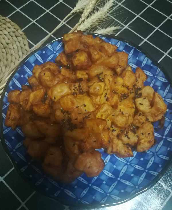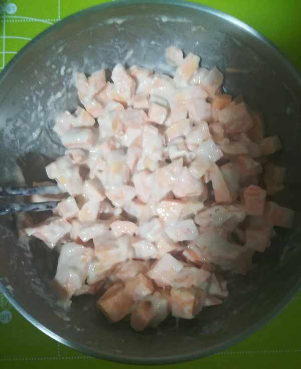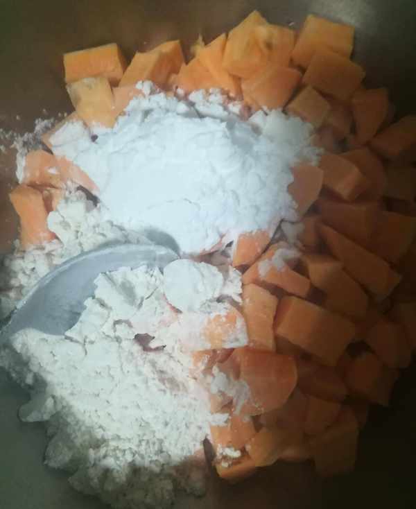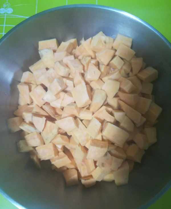 第一步:紅薯洗凈去皮切成小塊備用如圖