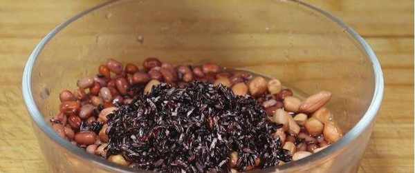 2、先將咱們準備好的紅豆取出來,將紅豆放到一個大碗中,加入適量的清水,將其清洗幹凈,清洗完瞭之後換一遍清水,把它放到一旁浸泡4個小時,紅豆一定要提前浸泡4個小時,因為這樣它才容易做熟。等到紅豆快要浸泡好瞭之後咱們將準備好的50克的紫米倒入到一個大碗中,加入適量的清水,然後將紫米充分清洗一遍,清洗得幹凈一點,清洗完瞭之後再用清水清洗一遍,然後放到一旁浸泡10分鐘。