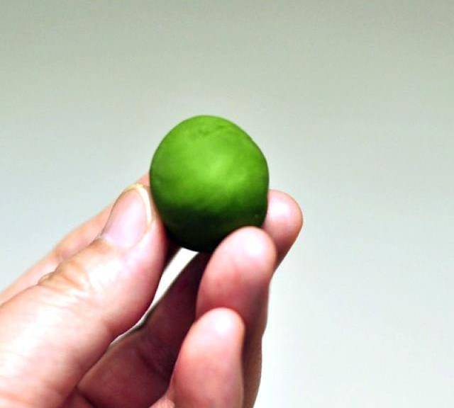 第2步、取一小塊兒,加入抹茶粉揉成綠色面團備用。