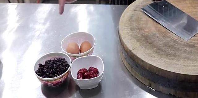 原材料:黑米、紅棗、雞蛋、白糖、水淀粉。