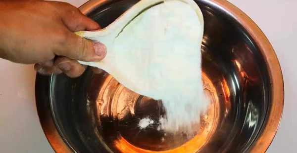 準備150克的普通面粉放入兩顆的酵母,再放5克的白砂糖,促進發酵,把它們攪拌均勻,然後沿旁邊倒入溫水,邊倒水邊攪動拌勻,把面碎揉制成面團,直至把面團揉至表面光滑,然後打上保鮮膜,醒發25分鐘,放20克的普通面粉,倒入適量的色拉油,油酥拌的稍微幹一點,做好後放到一邊備用。