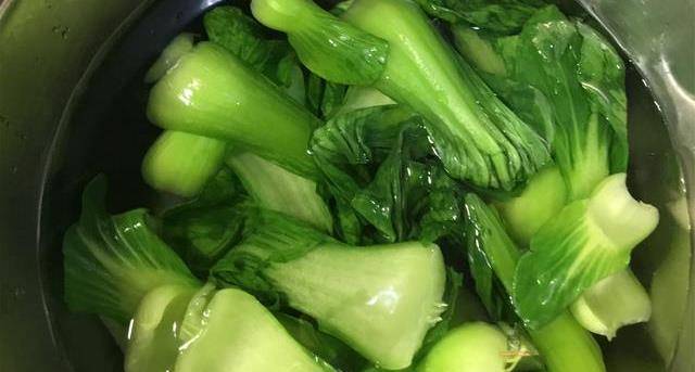 1、小油菜打水焯,要放鹽、一定要開水放入菜。