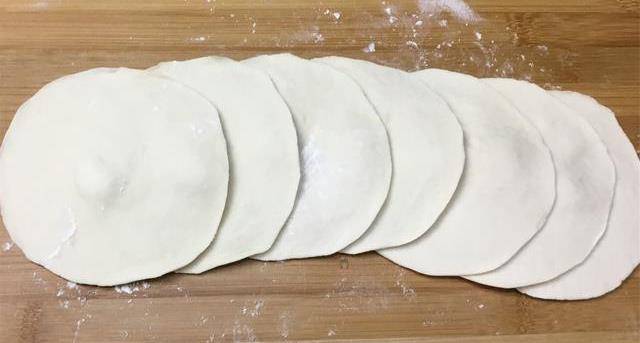 4、這時面也醒發好瞭,面板上撒點幹面粉,揉面排除空氣。搓成長條,切成劑子,把劑子翻轉往裡揉,團圓按扁。用搟面杖搟成中間稍微厚四邊薄的圓餅。
