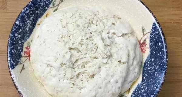 1、還是這個步驟,先和面吧。碗裡加入200克普通面粉、1克鹽增加筋性、2克酵母、用130毫升左右的溫水和面。稍稍留一點幹面粉,然後揉成軟硬適中光滑的面團。蓋上保鮮膜醒發到兩倍大,現在的氣溫低,需要時間長瞭點。大約需要一個小時左右吧。還有可以放在溫暖的地方,這樣醒發比較快。