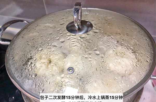 8、包子二次發酵15分鐘後冷水上鍋蒸15分鐘,蒸好後不要打開鍋蓋,再燜5分鐘即可開蓋出鍋。