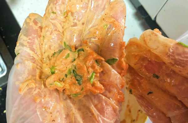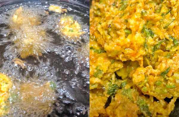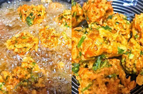 5、胡蘿卜面糊調好後,用手調整為一個個小球狀,準備炸制。