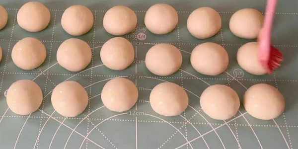 2、先把它切成兩份,分別搓成長條,分成大小相等的面積,把它們全部揉圓,揉面墊上,刷一層油防粘,擺上揉好的面積。先用油刷在面積表面清點一下,再將油塗抹均勻,刷薄薄的一層即可,蓋上保鮮膜,醒半個小時以上。