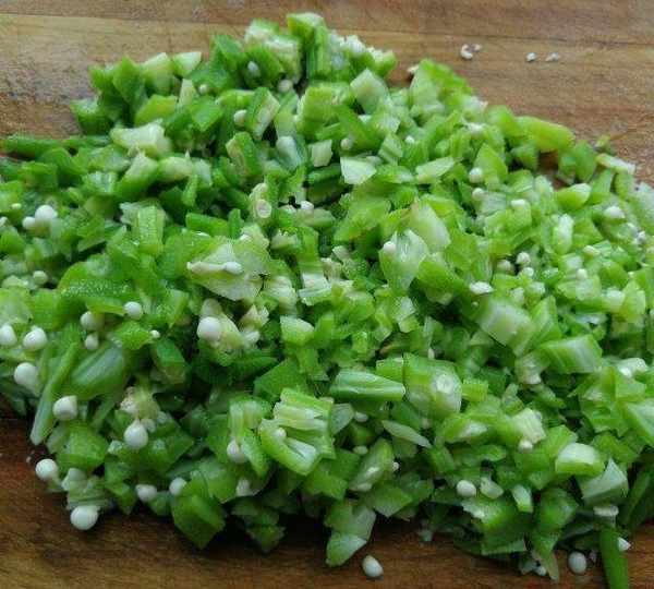 第1步、秋葵洗凈去蒂,在沸水中焯水2分鐘,撈出過涼水。