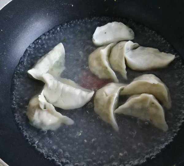 第10步、鍋中放水燒開,加點鹽,放入餃子燒煮,水開後點兩次冷水,再次浮起後即可。