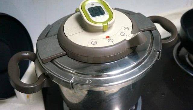 5、將所有原料倒入快鍋中,加入1.5L清水,設定壓力為1檔,設定烹飪時間為15分鐘,先開大火,待升壓結束傳感器提示後改小火,烹飪結束後傳感器會發出蜂鳴提醒關火