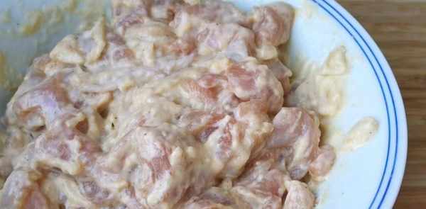 第四步:攪拌至使每一塊雞肉都裹上一層面糊。