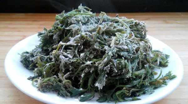 材料:白蒿,植物油,鹽,雞蛋,胡椒粉,面粉。