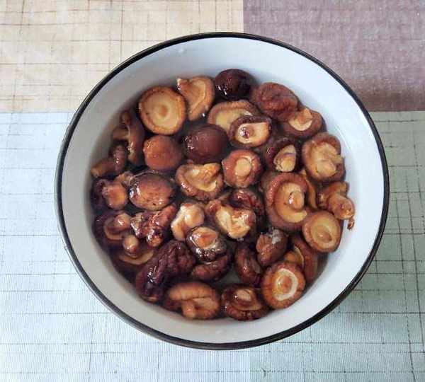 第2步、幹香菇提前泡發。先泡至半軟,然後洗幹凈,換水再泡,第二次泡的水就可以用來煮飯。