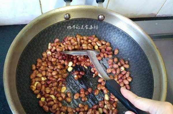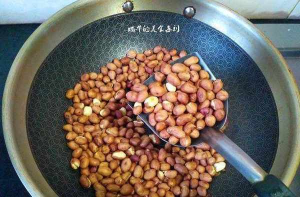做法1,花生清水沖洗一下,控幹水分放入鍋中(不放油),中火炒至出來噼啪聲,改小火再翻炒一會。